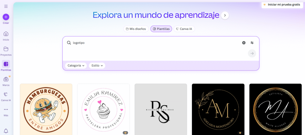 - Crear un logo en Canva con ideas inspiradas en prompts visuales.