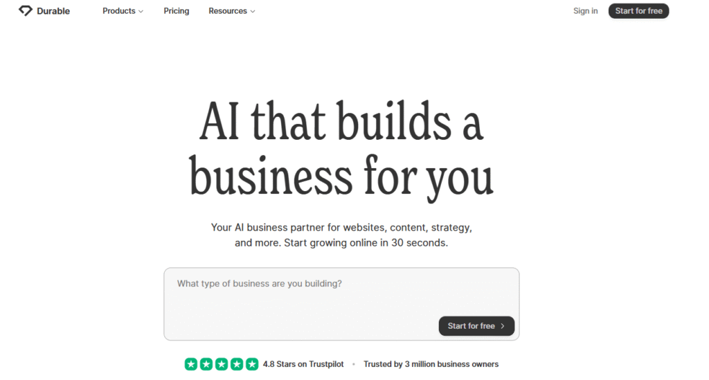 ✅ 4. Durable — Crea una página web en 30 segundos con IA